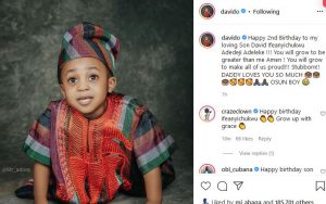 “Happy 2nd Birthday to my loving Son David Ifeanyichukwu Adedeji Adeleke. You will grow to be greater than me Amen! You will grow to make all of us proud. Stubborn!! DADDY LOVES YOU SO MUCH. OSUN BOY,” he wrote.