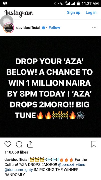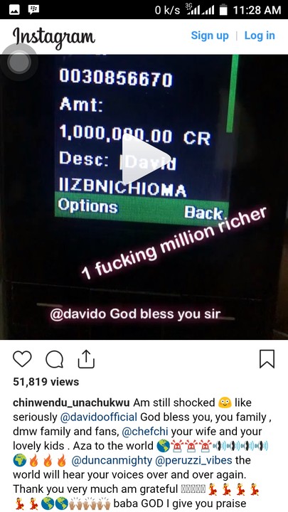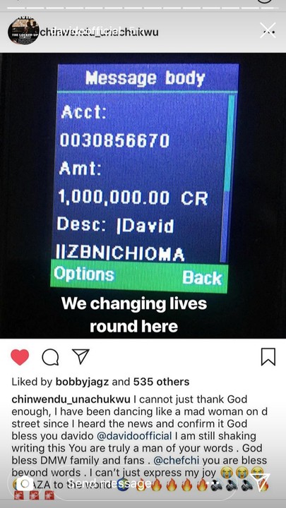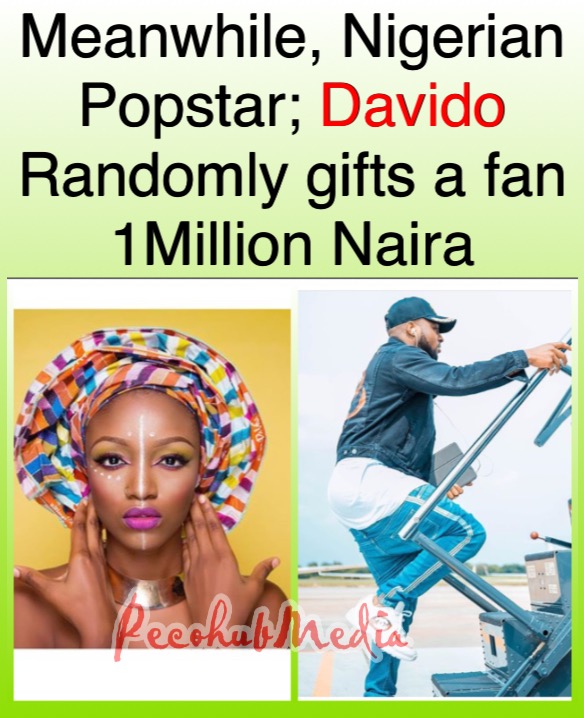 Nigerian Popstar; DAVID ADELEKE Popularly known as DAVIDO @davidoofficial Randomly picks and gifts a loyal fan with the whopping sum of 1MILLION NAIRA