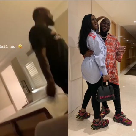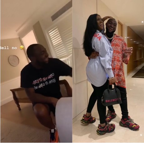 Davido was seen kneeling down as he hilariously proposed to his girlfriend, Chioma as she says no.