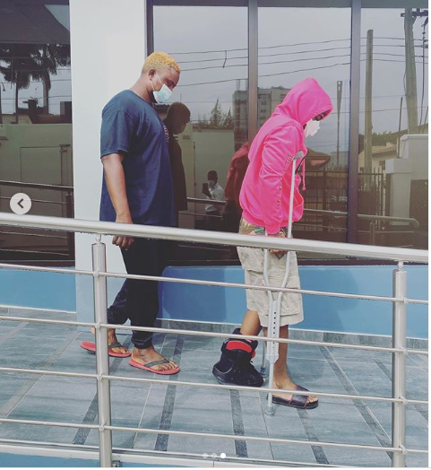 His lawyer, Bobo F. Ajudua shared photos of the singer grappling with crutches while wearing a medical walking boot for broken foot.