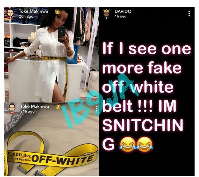 Davido issues stern warning after Toke Makinwa flaunted her off-white belt