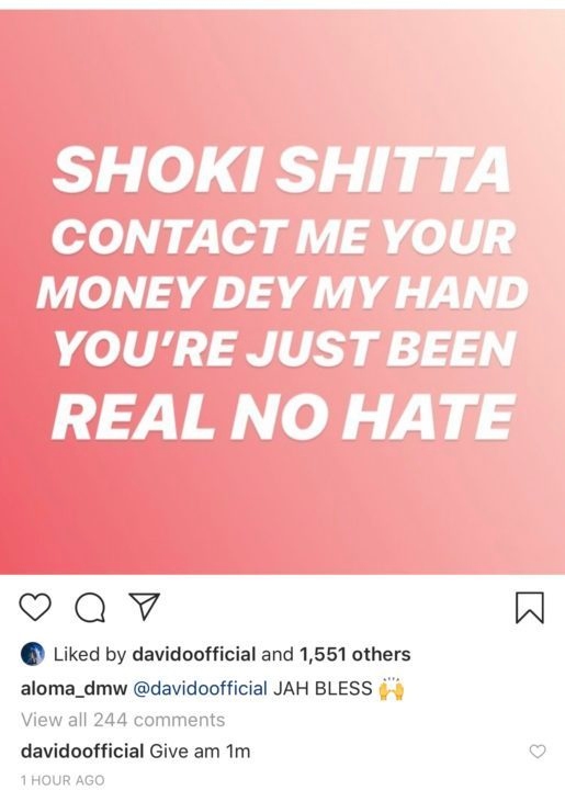 Davido has offered N1m to a ‘street tout’ identified as Shoki Shitta, who was beaten for disrespecting Wizkid and trailing his sister to their fast food.Shoki Shitta had slammed Wizkid last week for not settling them when he came to Shitta in Surulere. The street tout who told his gang members playing a Wizkid song to switch to Davido, praised Davido as he slammed Wizkid for giving money to someone else during his visit.