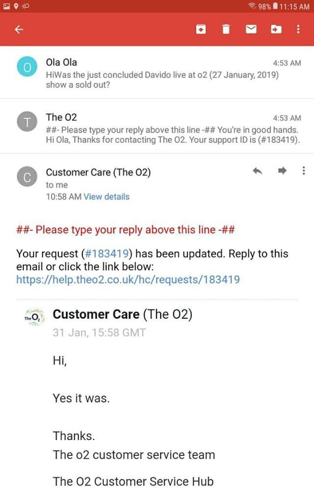 Well, Davido has shared proof showing an email received from O2 Arena, answering the question.