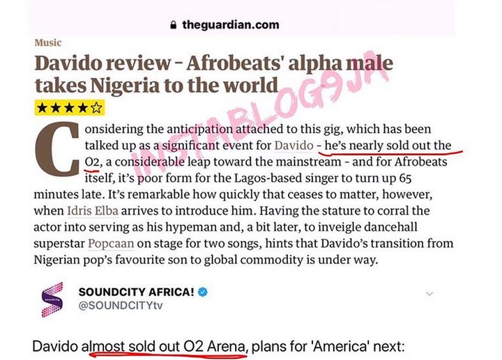 Recall that Davido claimed the 20,000 capacity O2 Arena was sold out, and extra tickets were even sold.
