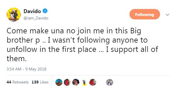 Come make una no join me in this Big brother p .. I wasn’t following anyone to unfollow in the first place … I support all of them.