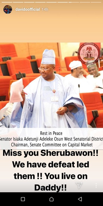 Popular musician Davido shares a photo on his insta story to remember his late uncle Senator Isiaka Adeleke who died some years back.