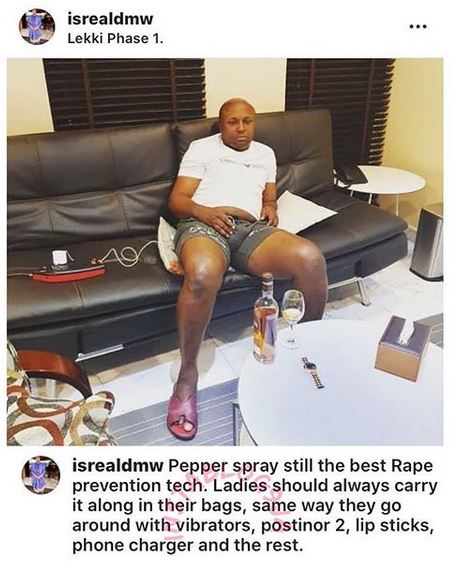 Israel had on Saturday made an update on social media advising women on how to deal with rape. In his post he advised that women go around with pepper spray just as they go with adult gadgets.