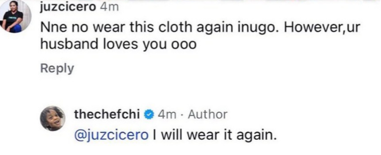 Chioma responded: “I will wear it again.”