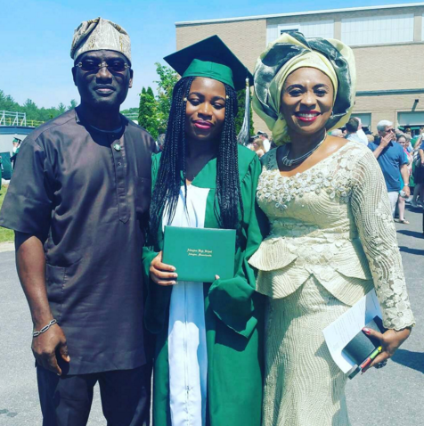 Nicole, one of the daughters of Dayo Adeneye, graduated from high scool in the US this weekend. Her proud parents are pictured above with her. Congrats to her.