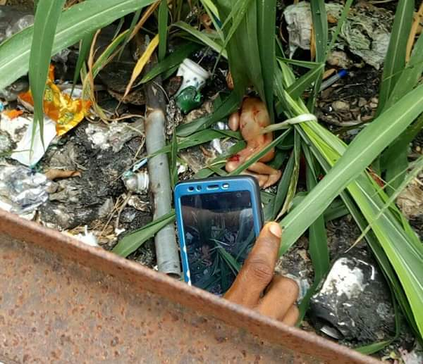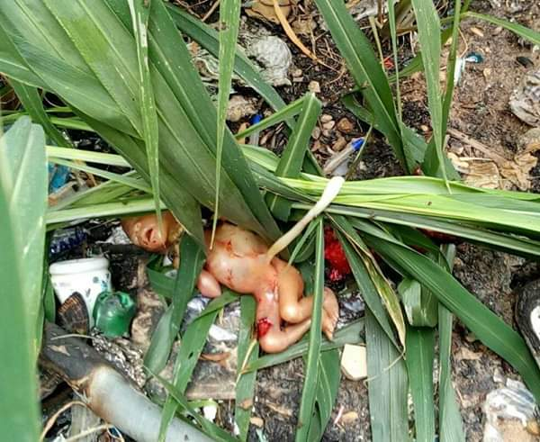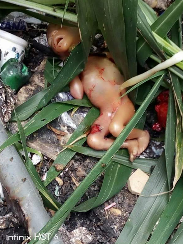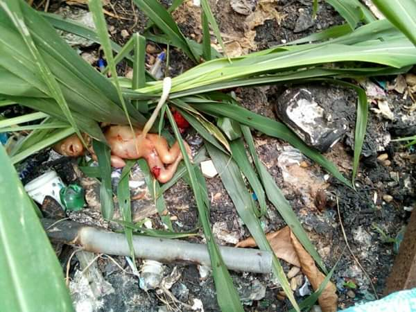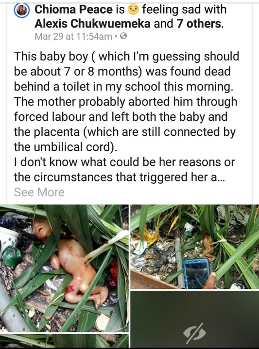 A lady identified as Chioma Peace took to Facebook to share photos of a dead baby dumped behind the toilet in their school and wrote….