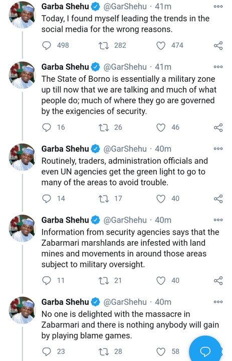 “No one is delighted with the massacre in Zabarmari and there is nothing anybody will gain by playing blame games.