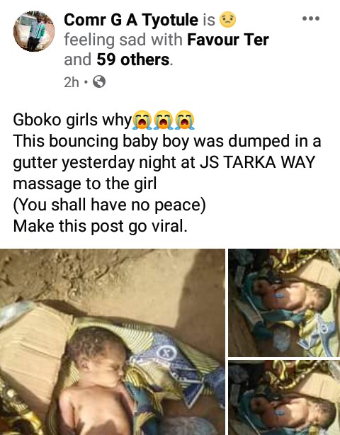 A newborn baby boy has been found dead inside a gutter in Gboko Local Government Area of Benue State, IgbereTV reports.