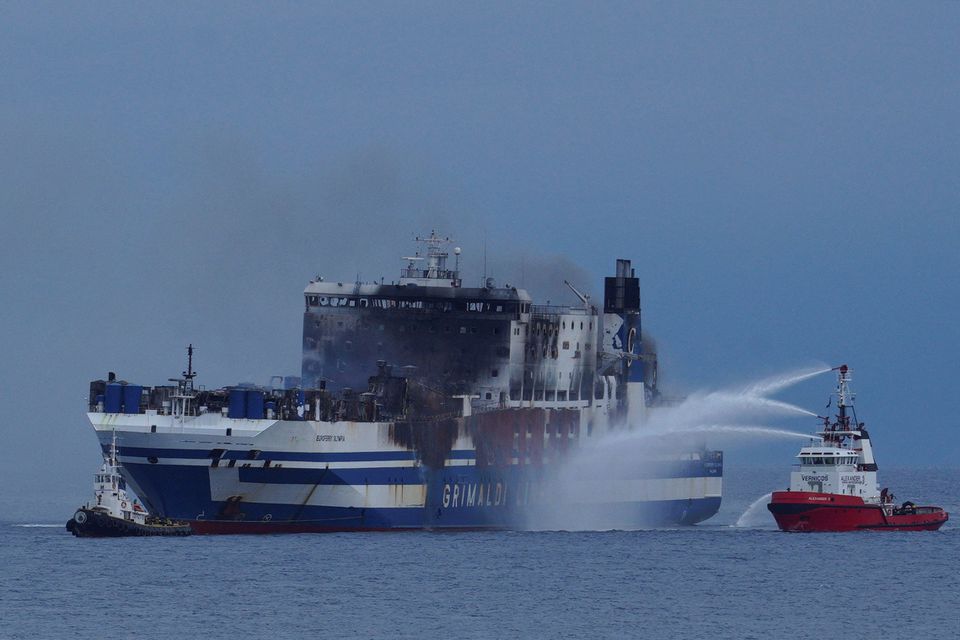 The Euroferry Olympia was on its way to the Italian port of Brindisi from Igoumenitsa in Greece when it was engulfed by flames off the island of Corfu in the Ionian Sea last Friday.