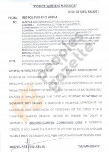Similarly, the Inspector General of Police, Alkali Usman, in the signal message, informed all departments and commissioners of police across Nigeria of the delay in their November salaries.