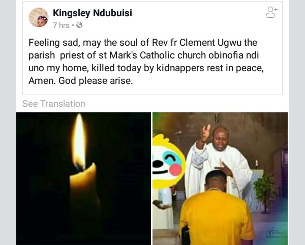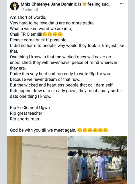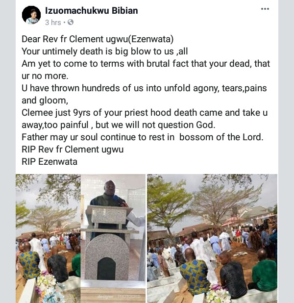 Director of Communication, Enugu Catholic Diocese, Rev . Fr. Benjamin Achi , who confirmed the incident, called on the government of Enugu State to live up to its responsibility of protecting lives and property. He expressed worry that this is the first time a priest would be kidnapped inside the Church premises in the Diocese. Meanwhile late Father Clement Ugwu’s friends have taken to Facebook to mourn his death.