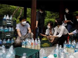 Gathered at a small park in Seoul, the group filled dozens of 2 litre bottles with up to 1.5kg of rice each, sending up to 700kg of rice in total, Park said.