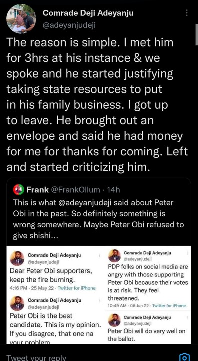 The reason is simple. I met him for 3hrs at his instance & we spoke and he started justifying taking state resources to put in his family business. I got up to leave. He brought out an envelope and said he had money for me for thanks for coming. Left and started criticizing him.