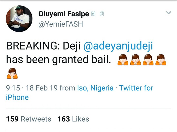 BREAKING: Deji @adeyanjudeji has been granted bail