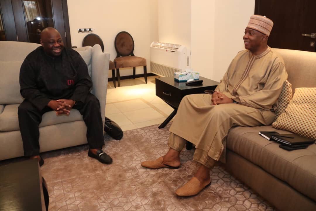 Chief Dele Momodu on a courtesy visit to the Senate President, Dr. Bukola Saraki in Ilorin as the famous traditional city prepares for a Durbar of the Ilorin Emirates.