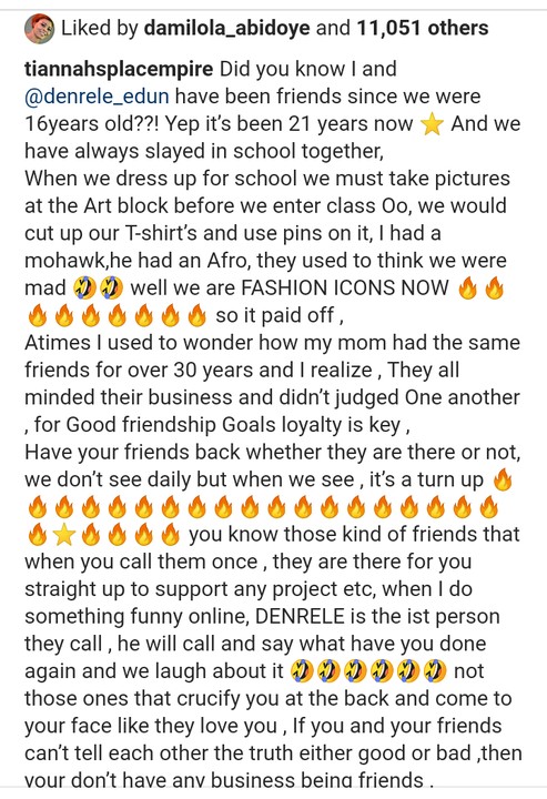 Did you know I and @denrele_edun have been friends since we were 16years old??! Yep it’s been 21 years now ⭐️ And we have always slayed in school together,
