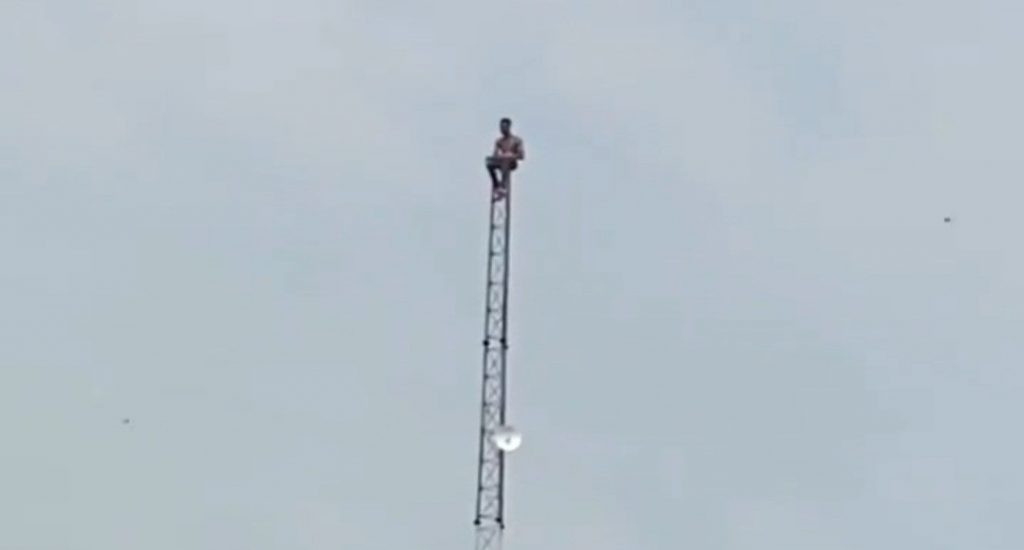 The man stormed the mast in the early hours of Monday April 19, and climbed his way to the top of the mast. No one knows his motive for climbing but there are fears that he might be suicidal. Efforts are being made to safely rescue him from the mast.