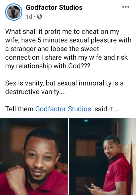 “S3x is vanity, but s3xual immorality is a destructive vanity. Tell them Godfactor Studios said it.”