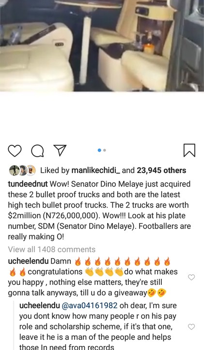 The 2 trucks are worth $2million (N726,000,000). Wow!!! Look at his plate number, SDM (Senator Dino Melaye). Footballers are really making O!