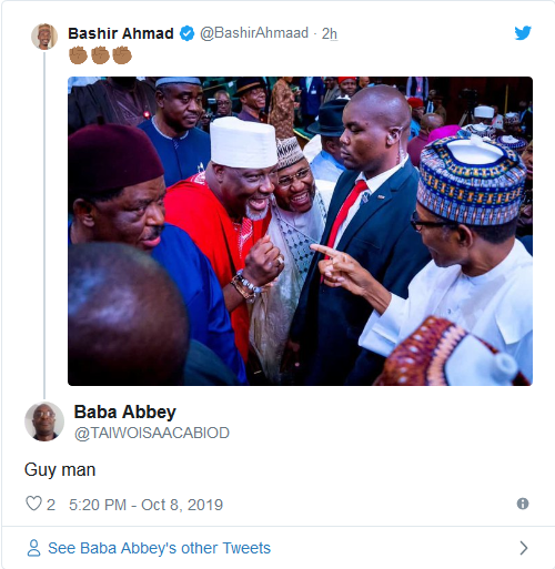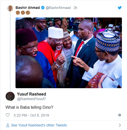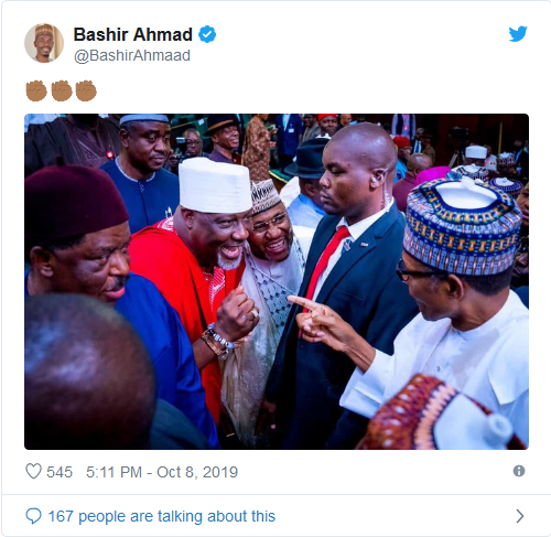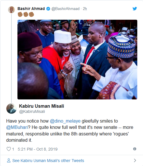 Nigerians have reacted to a trending photo of Dino Melaye greeting President Muhammadu Buhari today.