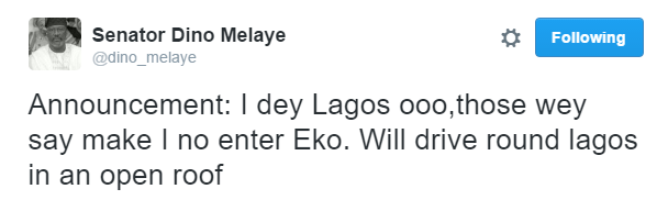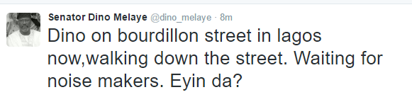 Following his altercation with Senator Remi Tinubu – wife of APC chieftain and former Lagos state Governor Bola Tinubu, Dino Melaye has dared haters to come out and do their worst as he is currently in Lagos state.