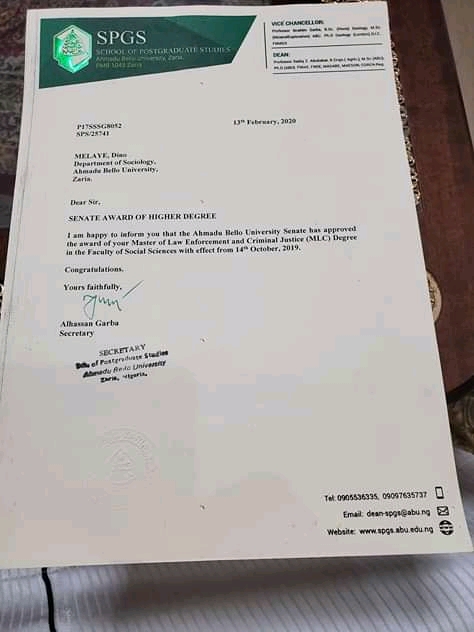 Former Senator Dino Melaye show his 6th Masters degree certificate, In Law Enforcement and Criminal Justice: ABU Zaria