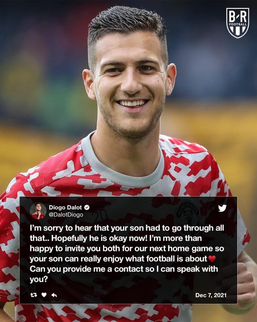 “I’m sorry to hear that your son had to go through all that,” Dalot wrote on Twitter.