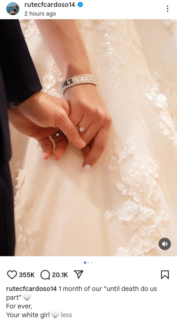 “1 month of our ‘until death do us part’,” Cardoso wrote as the caption. “Forever, your little white girl.”