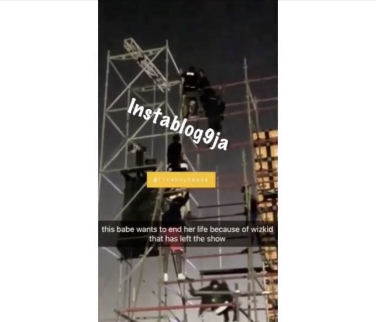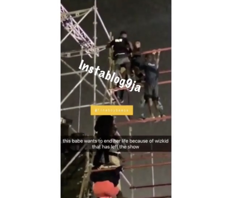 An obsessed female fan was stopped from committing suicide, last night, after Wizkid’s concert in Lagos.