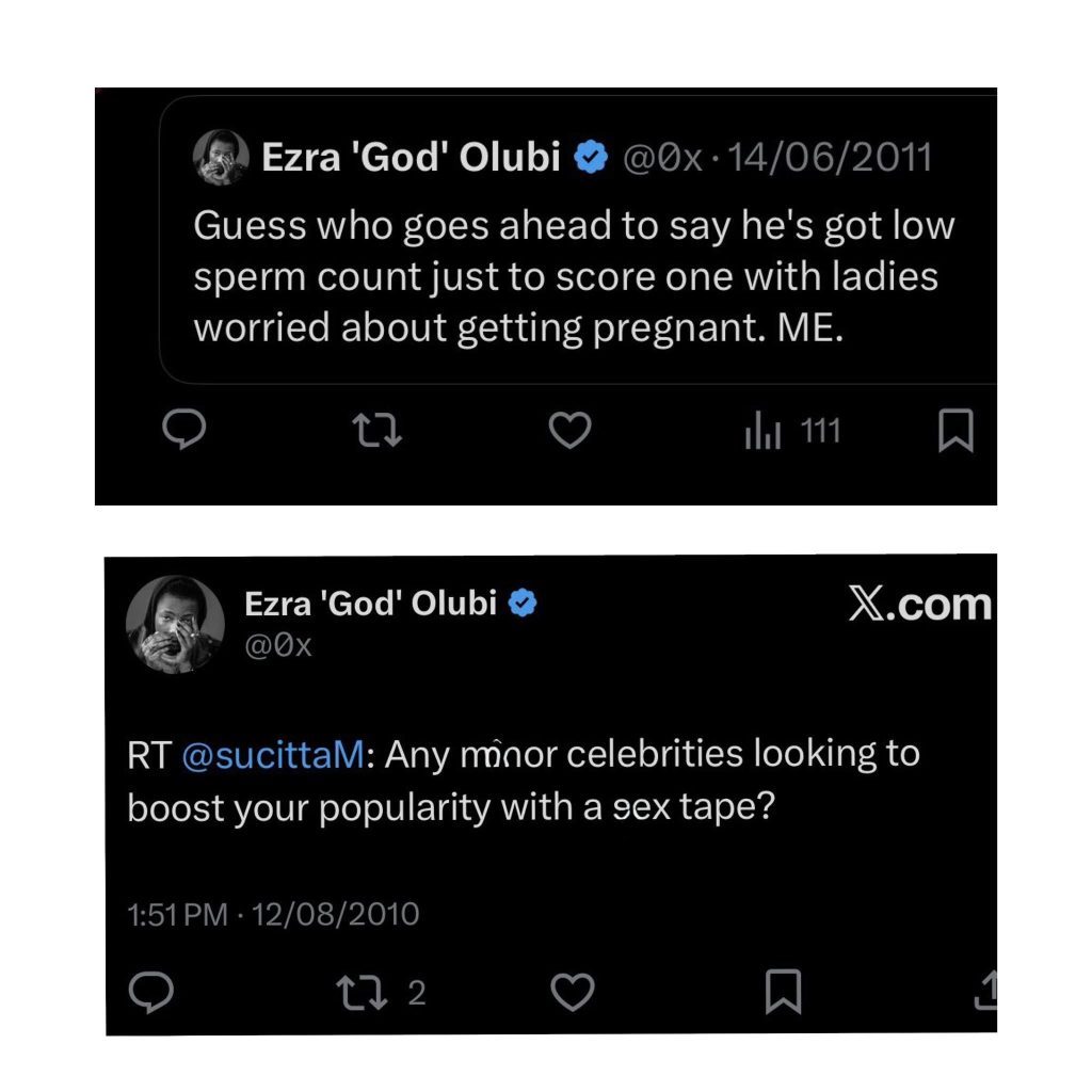 The resurfacing of the tweets comes shortly after news spread that Olubi had ended a relationship with one of the b!s3xual women within his polycule. The tech founder was reportedly in a romantic relationship with two women who were also dating each other, and online speculation suggests the breakup may have prompted renewed attention toward his past behaviour.