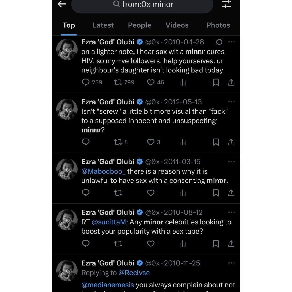 A series of disturbing and inappropriate tweets allegedly posted years ago by Paystack co founder Ezra Olubi resurfaced online on Wednesday, sparking widespread outrage and condemnation across social media.