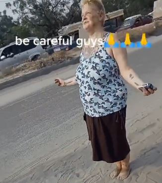 The woman, wearing a sleeveless top and skirt, had red spots – like syringe marks – all over her body and a cigarette in her hand.