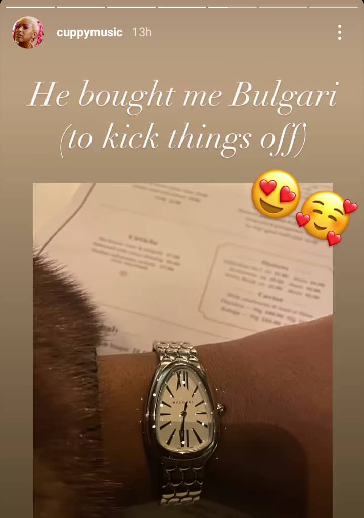 DJ Cuppy seems to have found love after flaunting a luxury Bulgari designer wristwatch her new boyfriend bought for her.