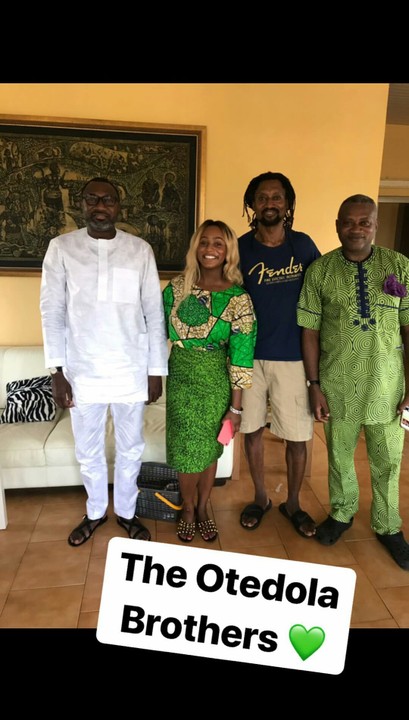 The Nigerian disc jockey paid a visit to her hometown in Ogun State in the company of her dad, Femi Otedola who met up with his two brothers in their mother’s home in Epe.