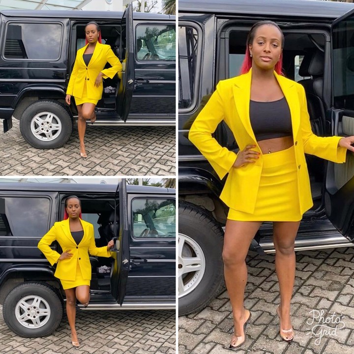 Nigerian disc jockey, Florence Ifeoluwa Otedola popularly known as DJ Cuppy, took to her instagram page sharing photos of herself in a black and yellow corporate outfit posing with her Mercedes Benz G Wagon.