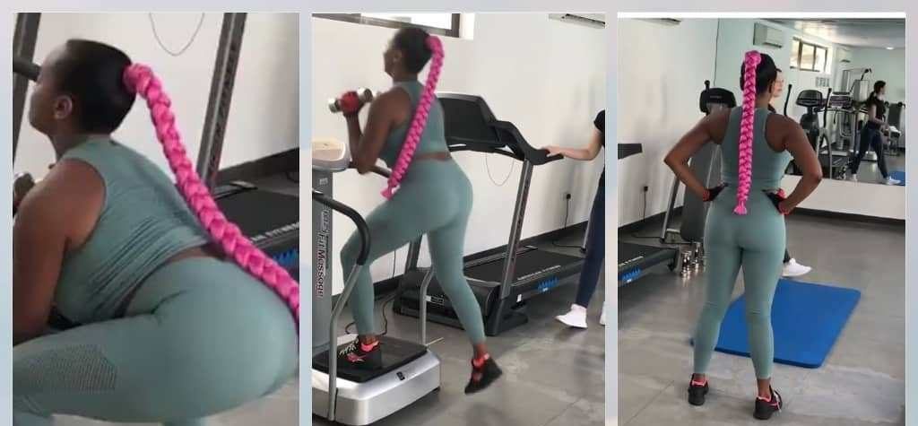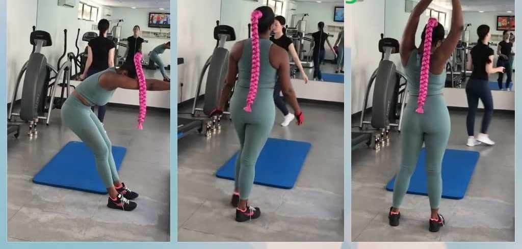 The DJ and singer shared this video of her at the gym trying to keep fit after eating too much of amala.