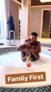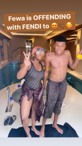 The 21-year-old son of billionaire tycoon, Femi Otedola getting some lessons on how to handle a water gun from his big sister.