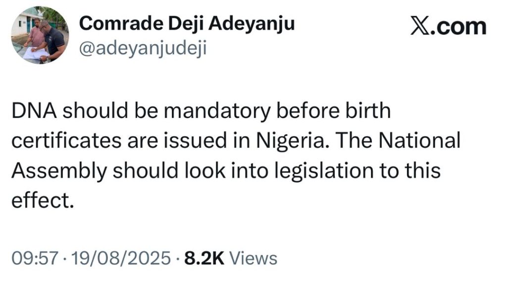 As a way of preventing paternity fraud, activist Deji Adeyanju has suggested that DNA tests should be made mandatory before birth certificates are issued to a new born child in Nigeria.