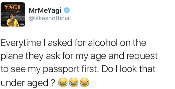 The 21 year old rapper took to social media to ask his fans if he looks underage as he is always asked about his age and also requested to show his passport first anytime he asks’ for alcohol on a plane.