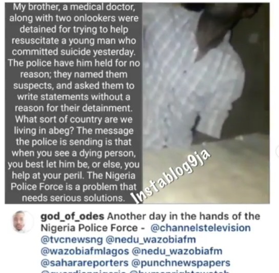 My brother, a medical doctor, along with two onlookers were detained for trying to help resuscitate a young man whp committed sucide yesterday.
