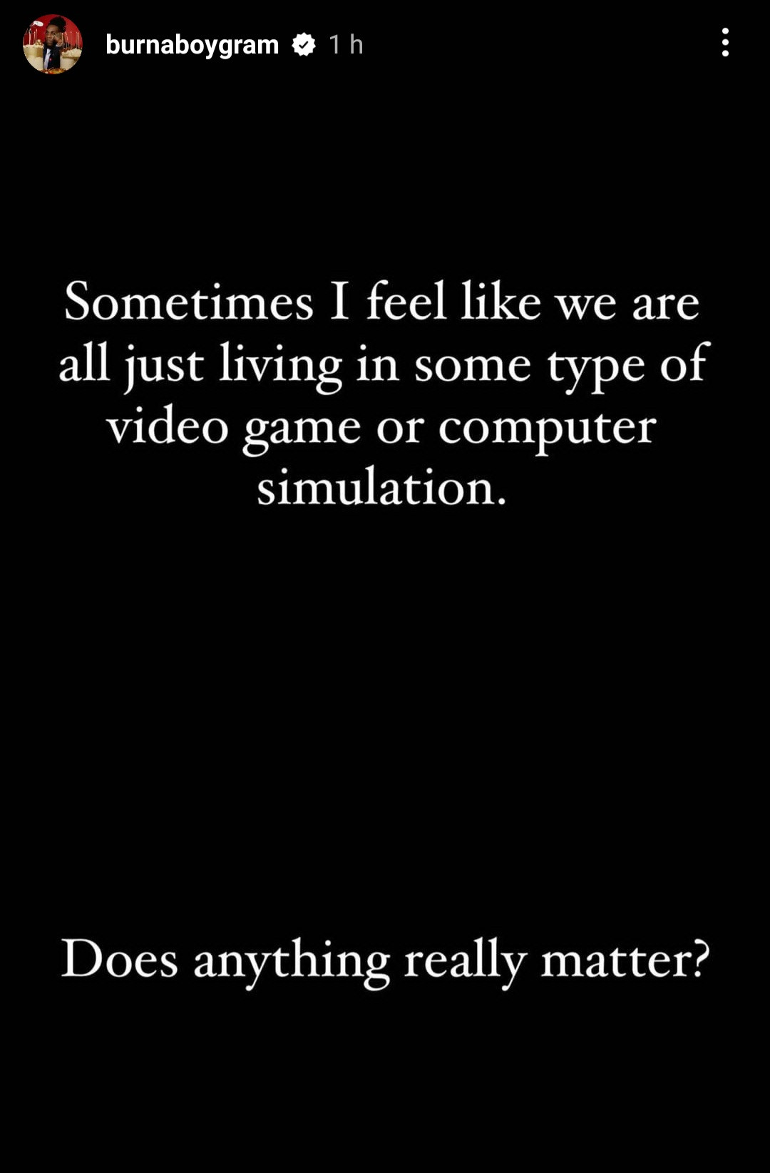 Burna Boy, the world-famous Nigerian singer, has asked a curious question about life.