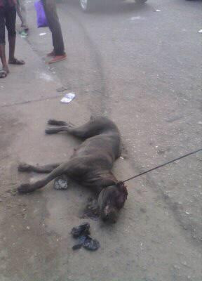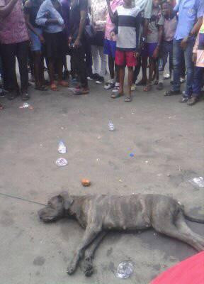 The crowd that gathered immediately the incident happened, beat the dog to death.