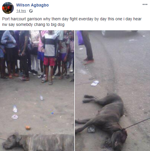 ”Port harcourt garrison why them day fight everday by day this one i day hear nw say somebdy chang to big dog” he wrote