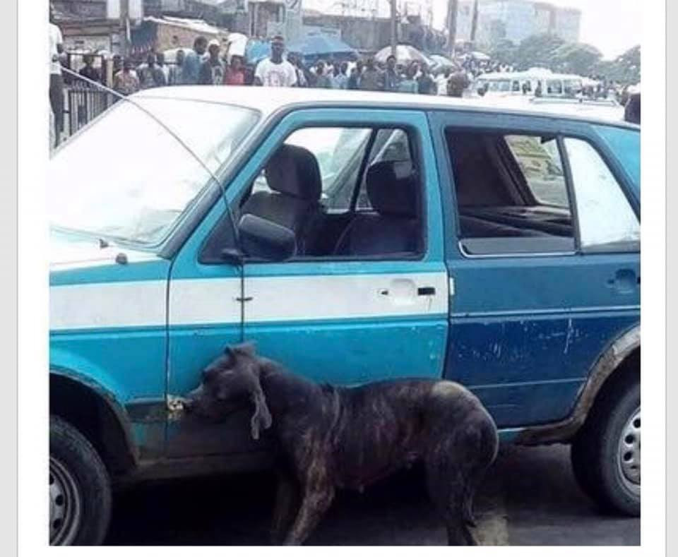 Pandemonium broke out in Port Harcourt the Rivers state capital on Thursday January 31st, after a man allegedly turned into the dog pictured above, moments after he came down from his car.