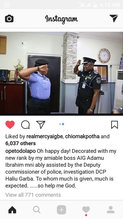 Celebrity police lady Dolapo Badmus becomes the chief superintendent of police recently. She was dressed by her boss AIG Adamu Ibrahim.