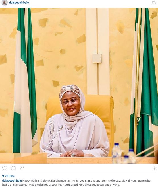 Dolapo Osinbajo, the wife of the Vice President has celebrated the First Lady, Aisha Buhari, as she clocks 50 today, February 17.